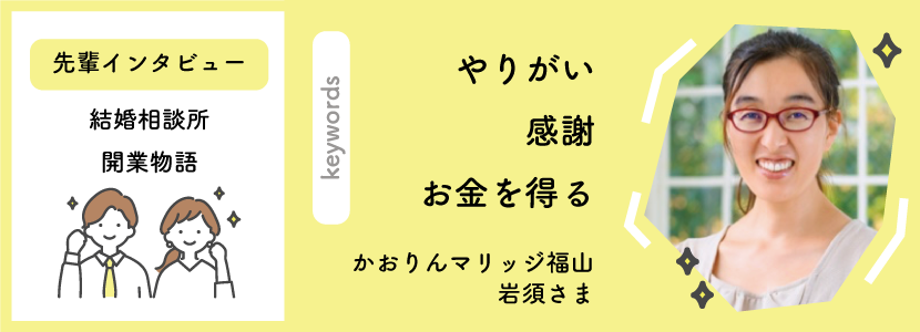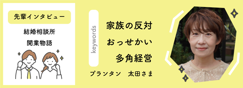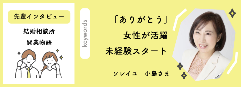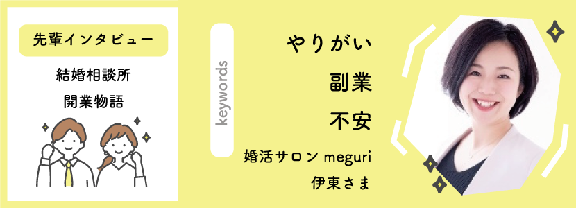 占い師から結婚相談所へ:ご縁を繋ぐ新たな挑戦とその成功の秘訣 SNSを活用して集客!ゼロからのスタート。婚活業界初心者だから「すぐ相談」。 諦めずに継続したことが集客につながりました 東海から全国展開!結婚相談所も順調に成長中 私自身が会員様の成婚にこだわることで集客が安定 多角経営で副業感覚で結婚相談所をスタート 会社員をしながら副業からスタート!知り合いもいないし、始める前は不安もありました 1回は諦めた結婚相談所の仕事。けれども、やっぱりやりたい!という気持ちが強かった 1 / 41234»